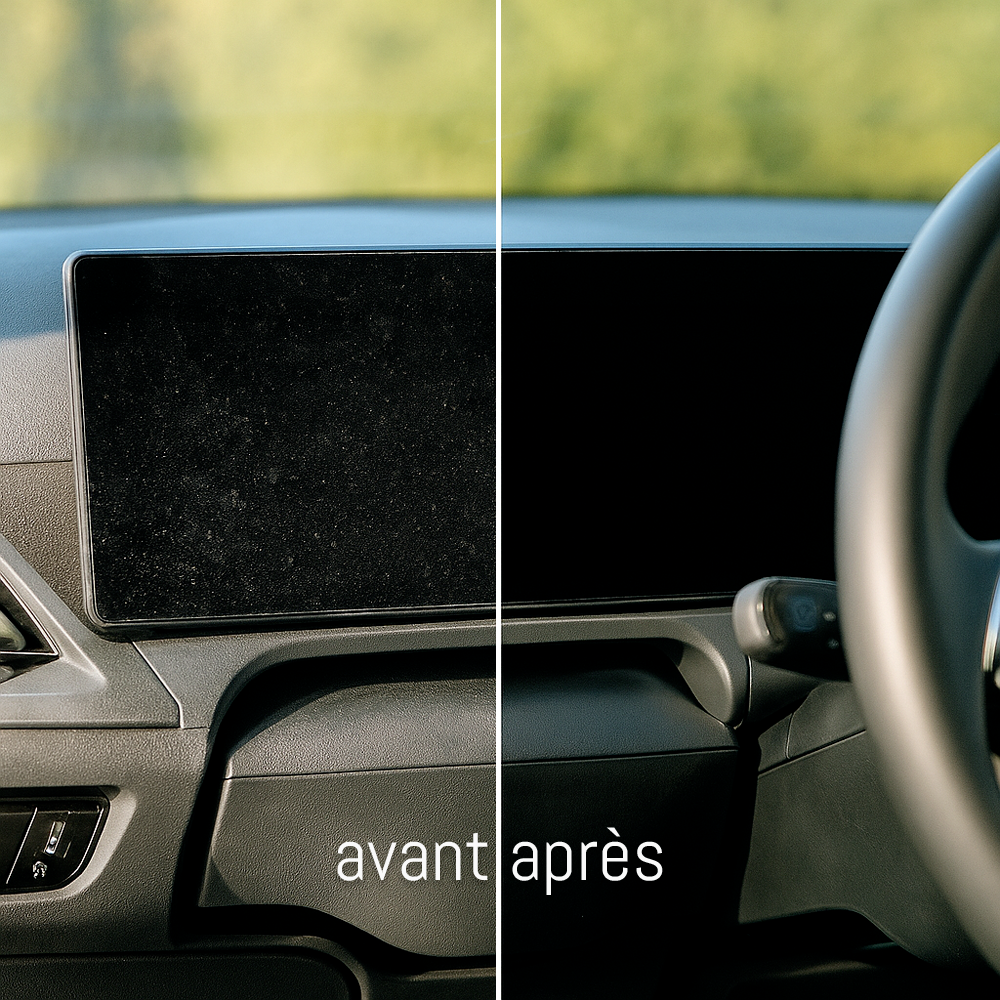 Grâce à sa formule antistatique avancée, Optimo™ PRO empêche la poussière et les particules de se redéposer sur vos surfaces intérieures. Les écrans, tableaux de bord et portières restent propres et lisses, sans traces ni reflets gênants.